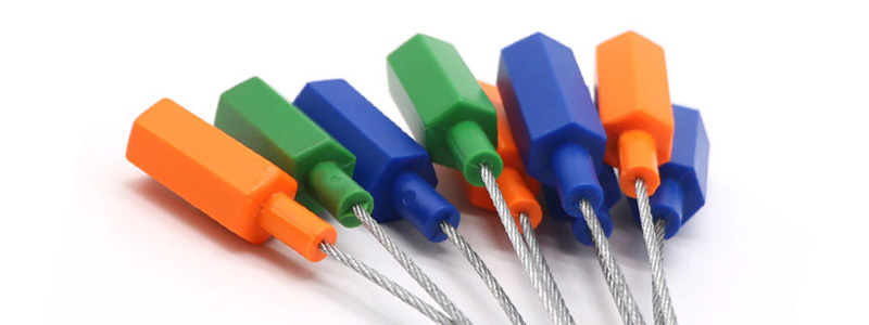 钢丝封条种类繁多,封条外部都会有层包裹材质,一般都是采用ABS塑料、铝合金金属、锌合金金属、RFID等做包裹锁头的钢丝封条。
